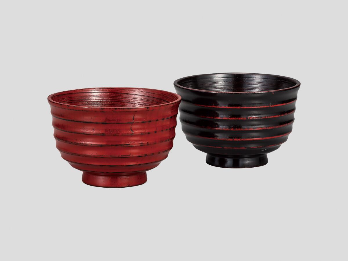 F8-1 夫婦汁椀 平ロクロ内さび 外根来・曙塗