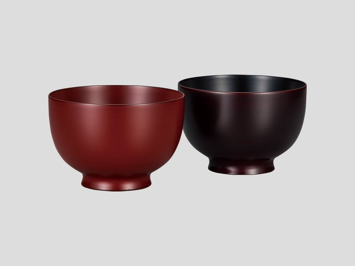 F12-1 夫婦汁椀 桜 筒型 朱塗・溜塗