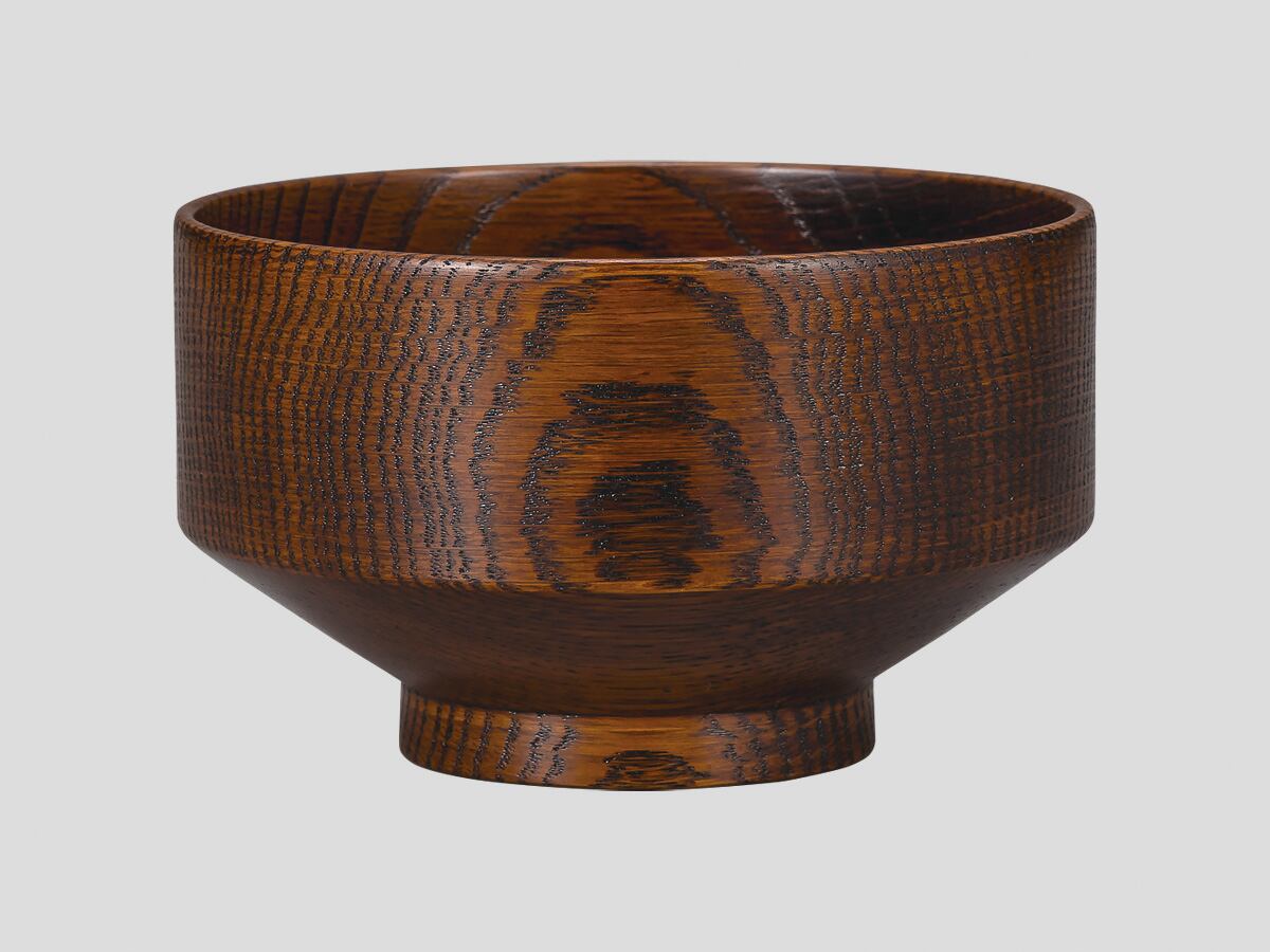 美しく特有の木目をもつ楢を轆轤挽きで仕上げ、本漆を塗り込んだ木製の椀です。