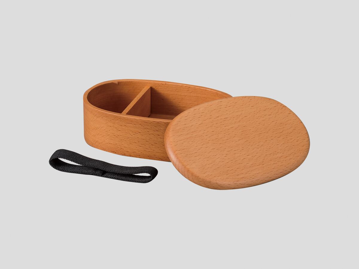 ブナの木を、くりぬいたシンプルな形状のお弁当箱です。