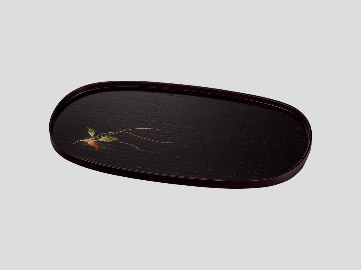F47-8 11.0もてなし盆 桐 水引草 溜塗