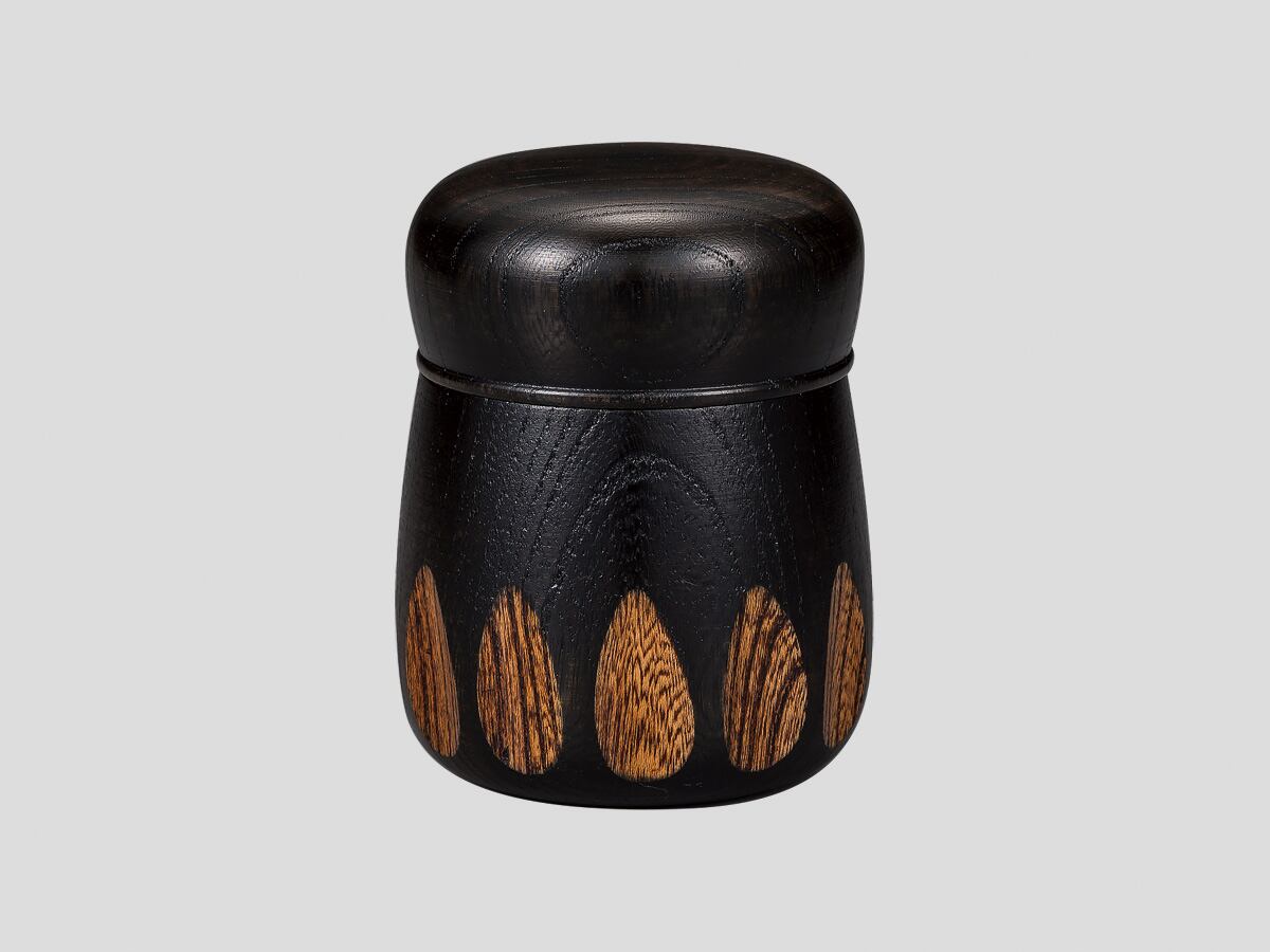 F57-5 欅 茶筒 漆切子 黒