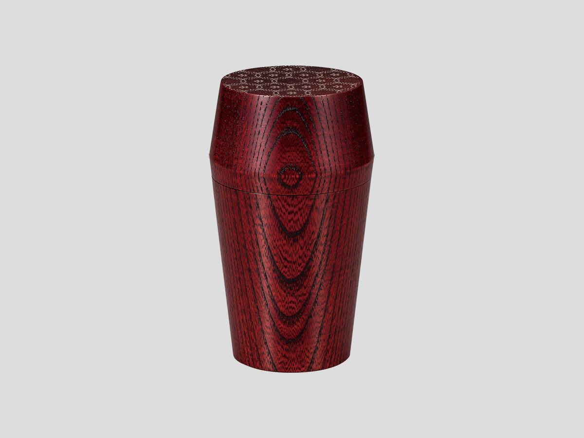 F58-1 茶筒 欅 花七宝 赤内スリ