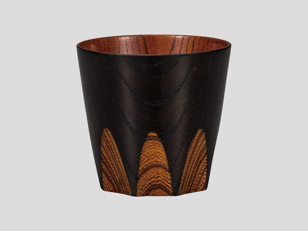 F61-4 欅 遊カップ 漆切子 黒