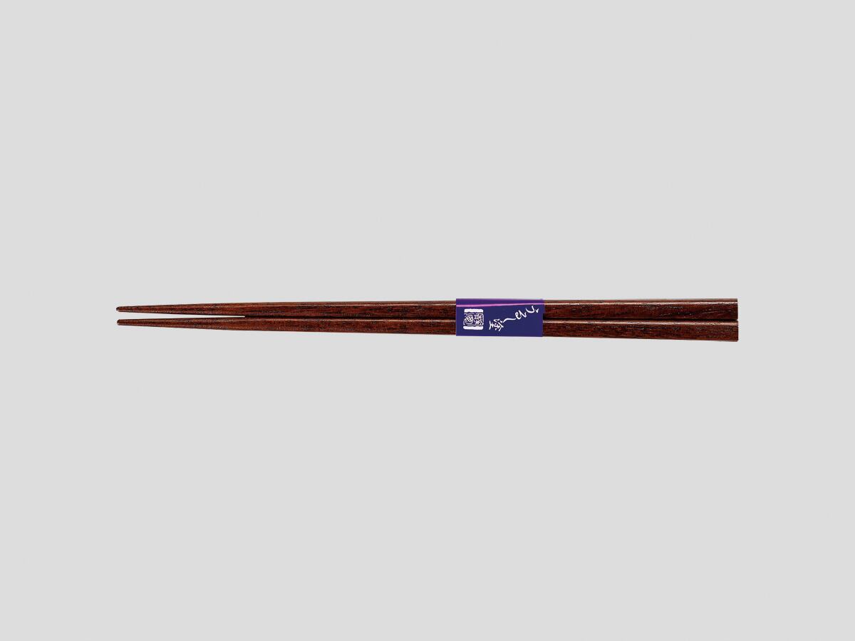 鉄木と呼ばれる、密度が高く箸に適した木を使っています。木目を生かしたすり漆仕上げです。