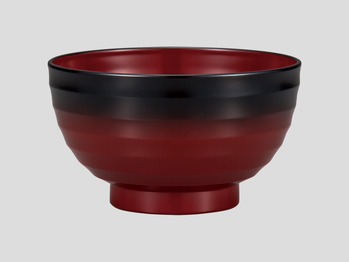 F104-11 3.8漆平筋汁椀 黒ぼかし内朱