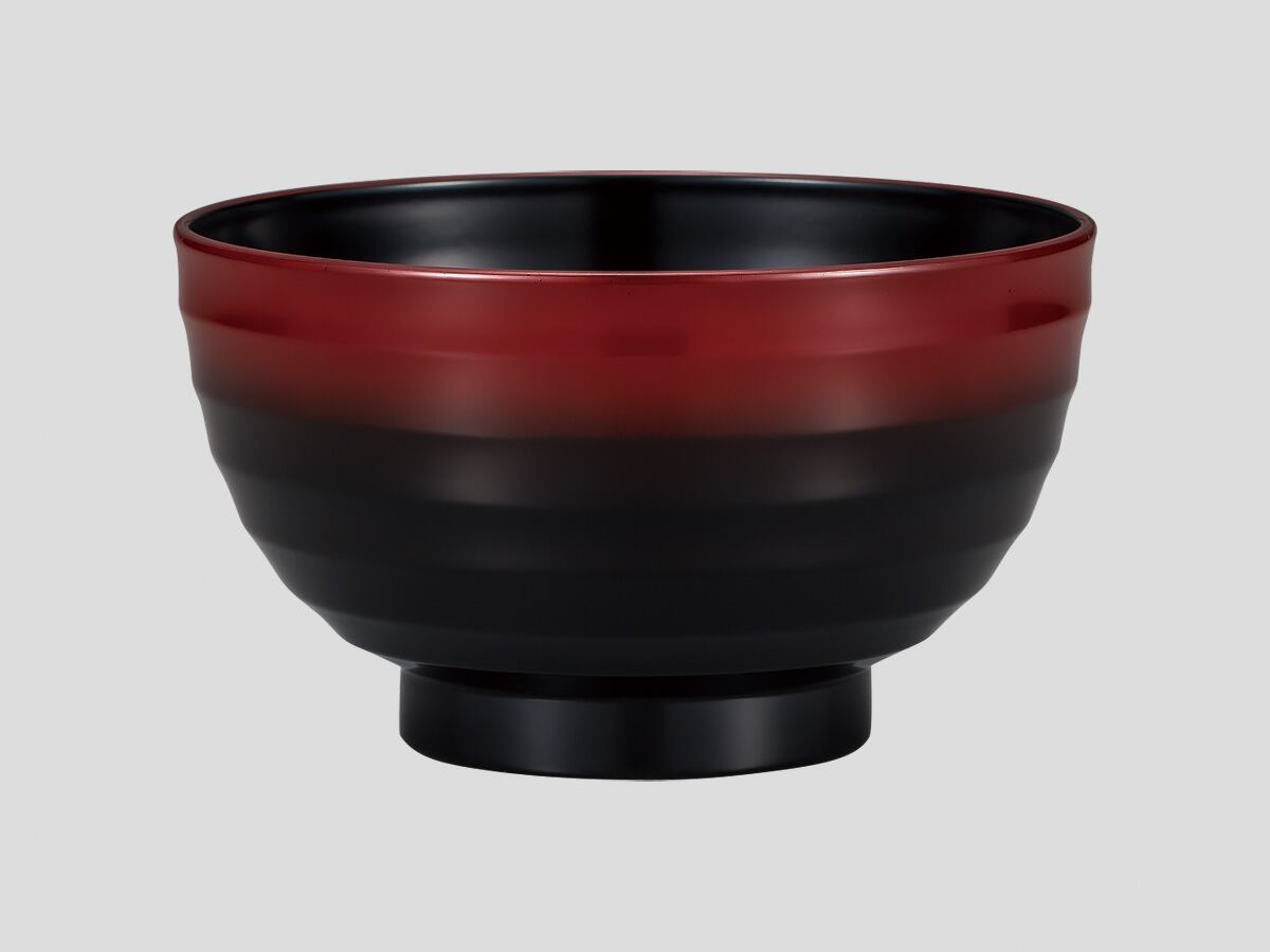 F104-12 3.8漆平筋汁椀 朱ぼかし内黒