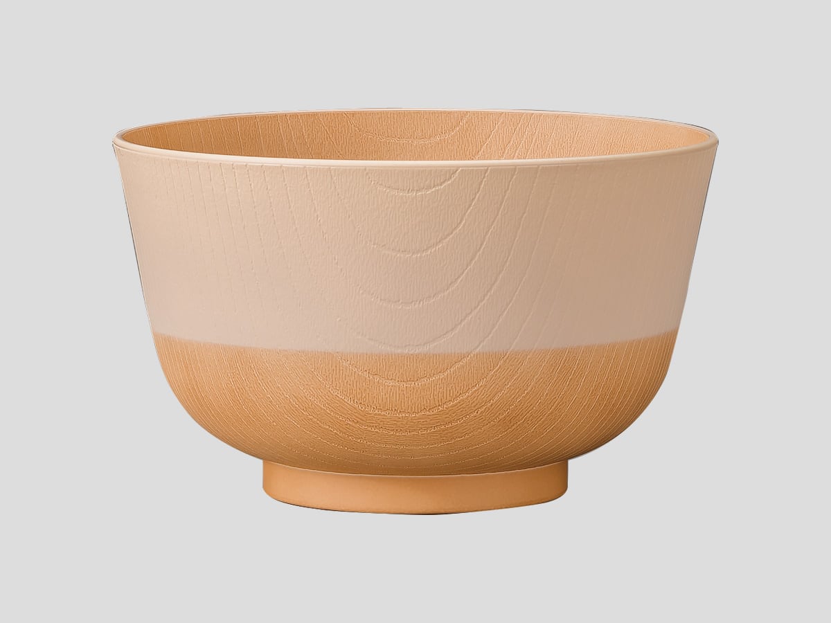 白木調の下地にきなり色を塗分けした軽くて割れにくい樹脂製のお椀です。家庭用食器洗浄機・電子レンジ対応。