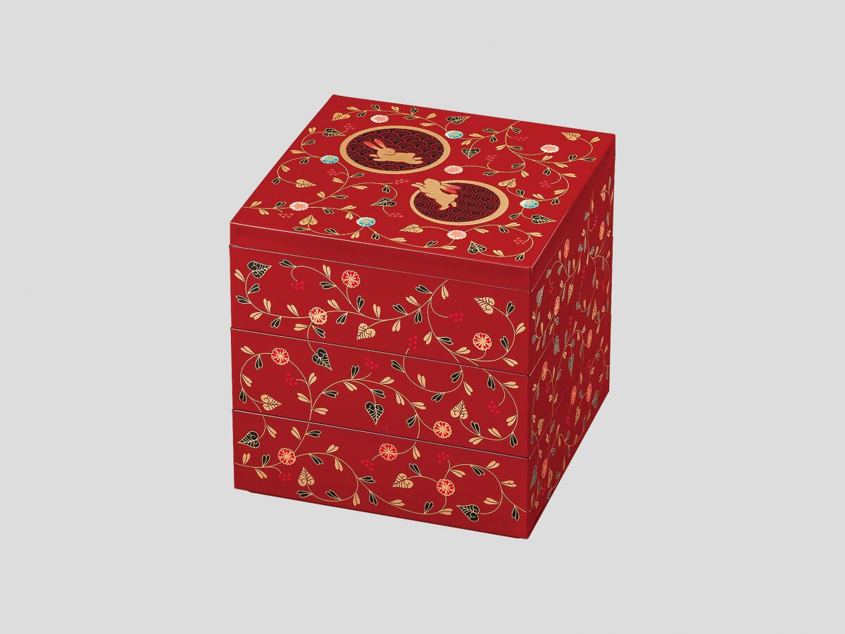 F110-1 5.0うさぎ唐草 三段重 総朱